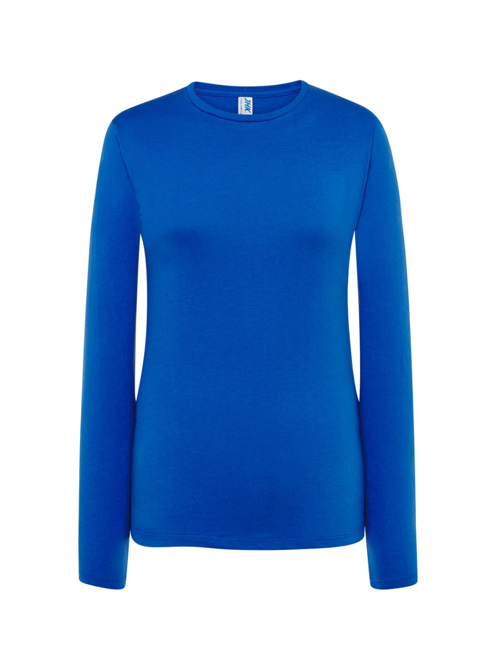 Damen-T-Shirt mit langen Ärmeln und Bündchen. Keine Seitennähte. Lycra-verstärktes 1x1-Rippbündchen. 100 % stabilisierte Baumwolle.