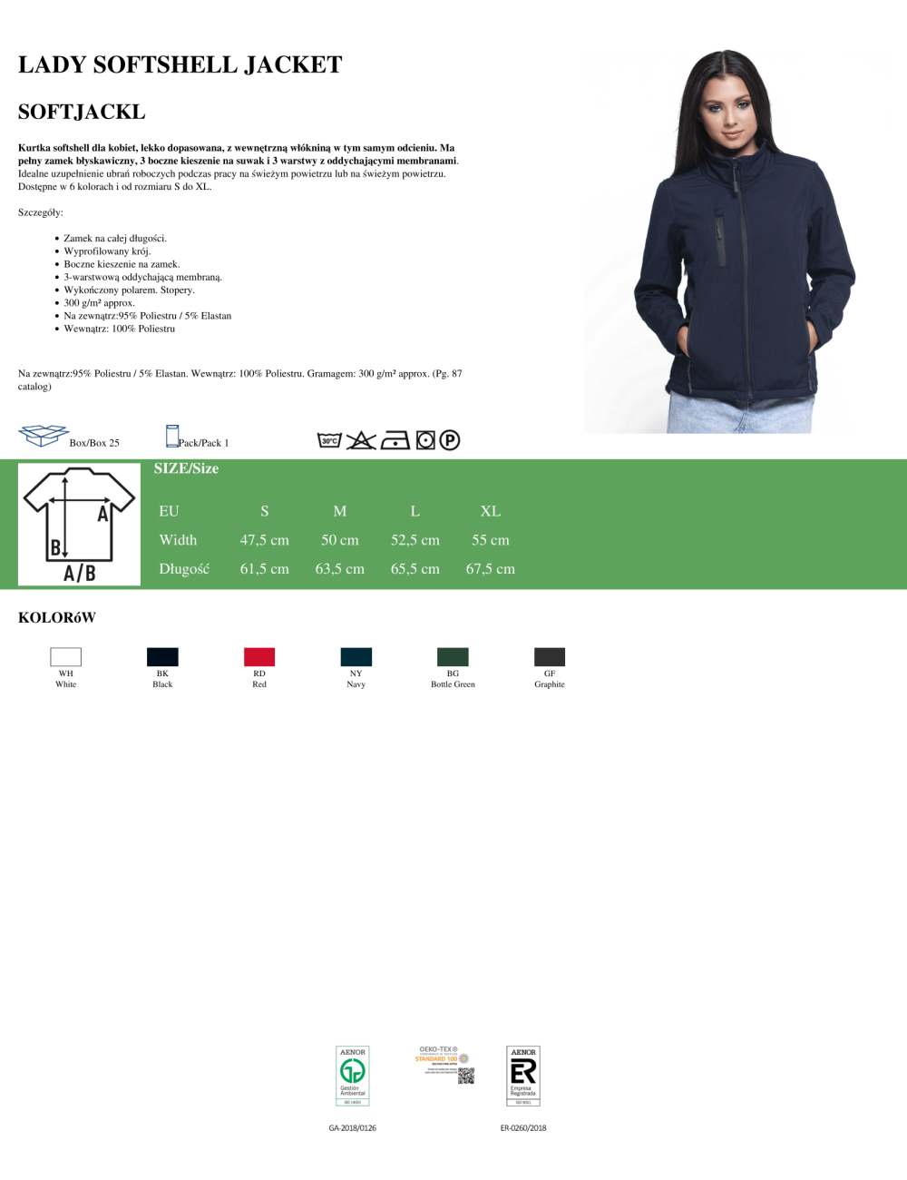 Softshelljacke für Damen. Langer Reißverschluss. Seitentaschen. Wasserdicht 3000 mm, Atmungsaktivität 3000 mvp, Windstopp. Außenmaterial: 95 % Polyester / 5 % Elasthan; Innenmaterial: 100 % Polyester