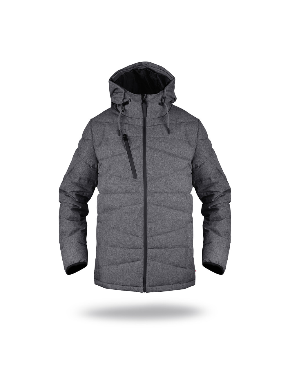 Herbst-Winter-Herren-Daunenjacke mit Kapuze aus hochwertigem Material; Füllung mit synthetischen Daunen für optimalen Wärmekomfort; asymmetrische Ziernähte; hochwertiger wasserdichter Hauptreißverschluss und Brusttasche; zwei Außentaschen mit Metallverschluss; Innentasche für Dokumente; Kapuze mit Stehkragen; Zierband in der Kapuzenregulierung; Bündchen mit elastischem Besatz; Kordelzugsystem unten innen