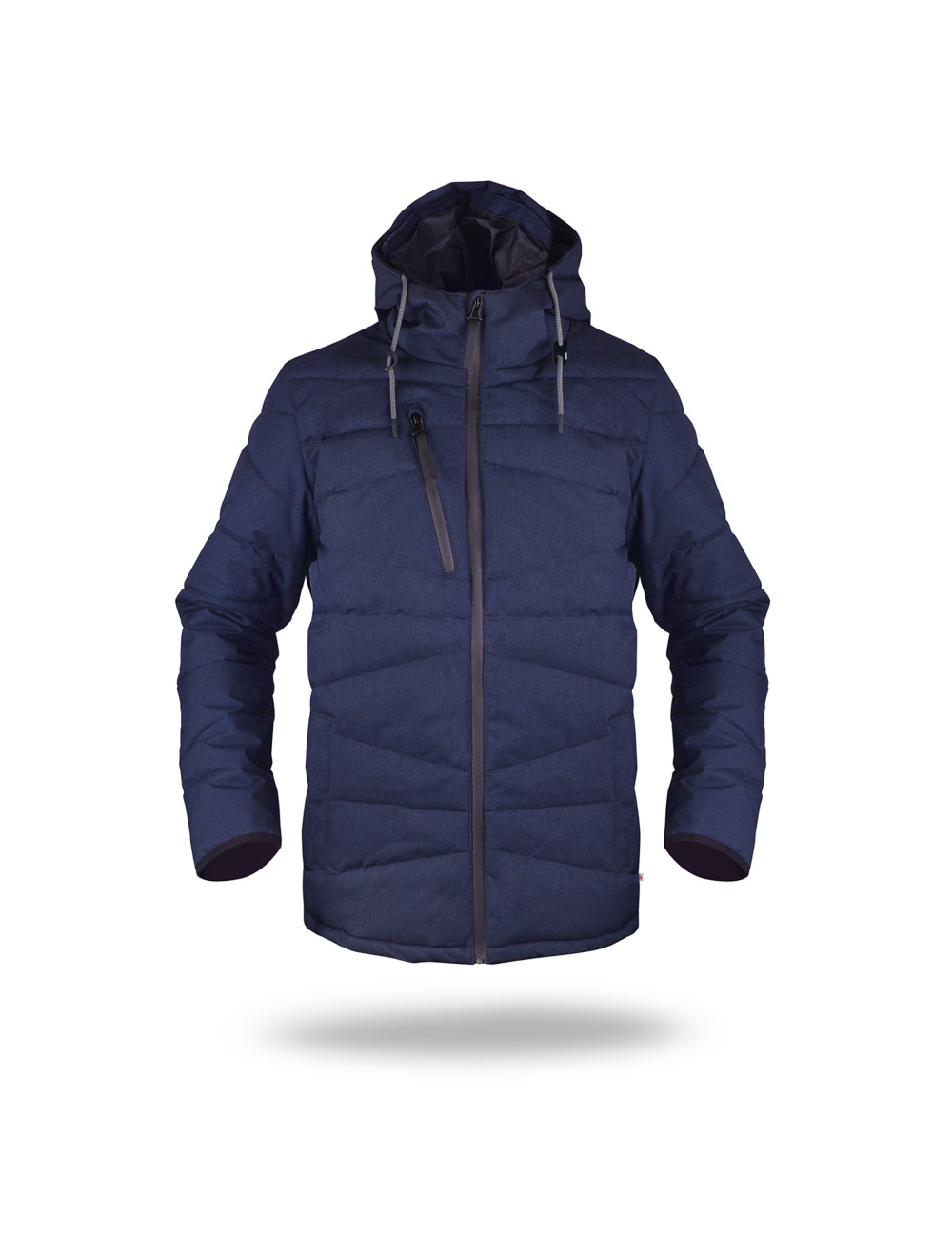 Herbst-Winter-Herren-Daunenjacke mit Kapuze aus hochwertigem Material; Füllung mit synthetischen Daunen für optimalen Wärmekomfort; asymmetrische Ziernähte; hochwertiger wasserdichter Hauptreißverschluss und Brusttasche; zwei Außentaschen mit Metallverschluss; Innentasche für Dokumente; Kapuze mit Stehkragen; Zierband in der Kapuzenregulierung; Bündchen mit elastischem Besatz; Kordelzugsystem unten innen