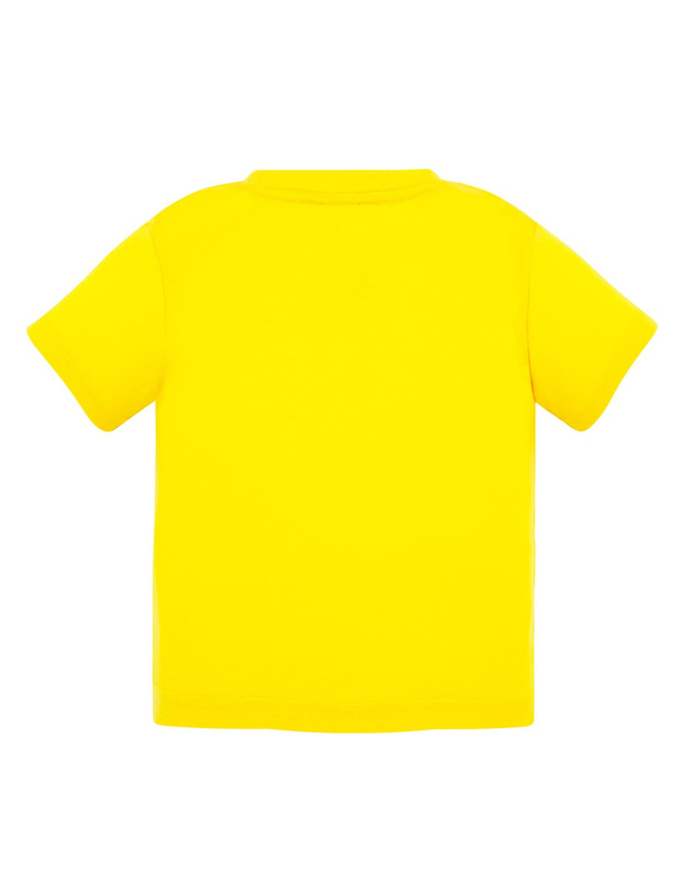 Baby-T-Shirt mit kurzen Ärmeln. Größe 0, mit Knöpfen an der linken Schulter befestigt. Lycra-verstärkte Manschette. Keine Seitennähte. Doppelte Nähte an den Schultern. Verstärkungsband. 100 % stabilisierte Baumwolle