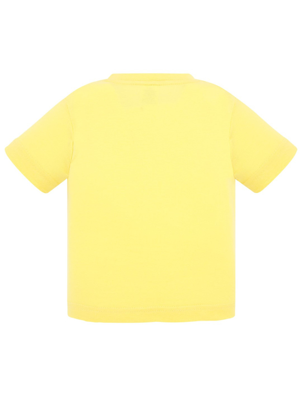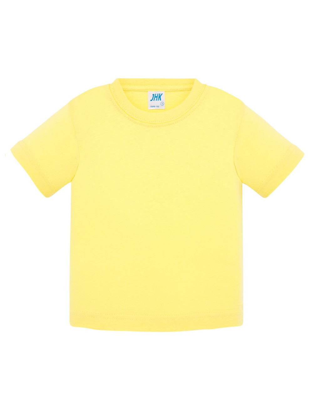 Baby-T-Shirt mit kurzen Ärmeln. Größe 0, mit Knöpfen an der linken Schulter befestigt. Lycra-verstärkte Manschette. Keine Seitennähte. Doppelte Nähte an den Schultern. Verstärkungsband. 100 % stabilisierte Baumwolle