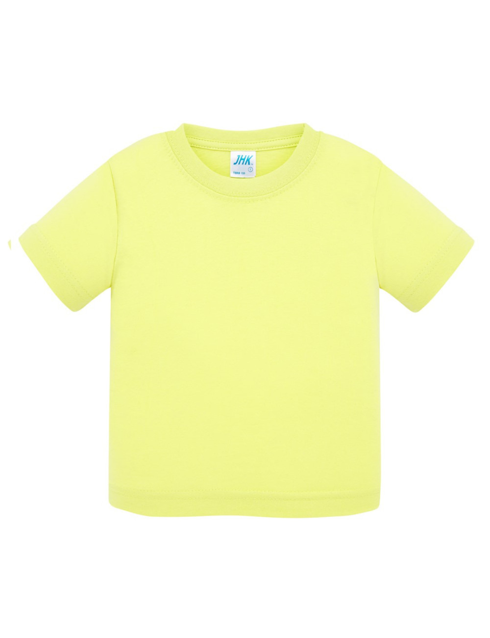 Baby-T-Shirt mit kurzen Ärmeln. Größe 0, mit Knöpfen an der linken Schulter befestigt. Lycra-verstärkte Manschette. Keine Seitennähte. Doppelte Nähte an den Schultern. Verstärkungsband. 100 % stabilisierte Baumwolle