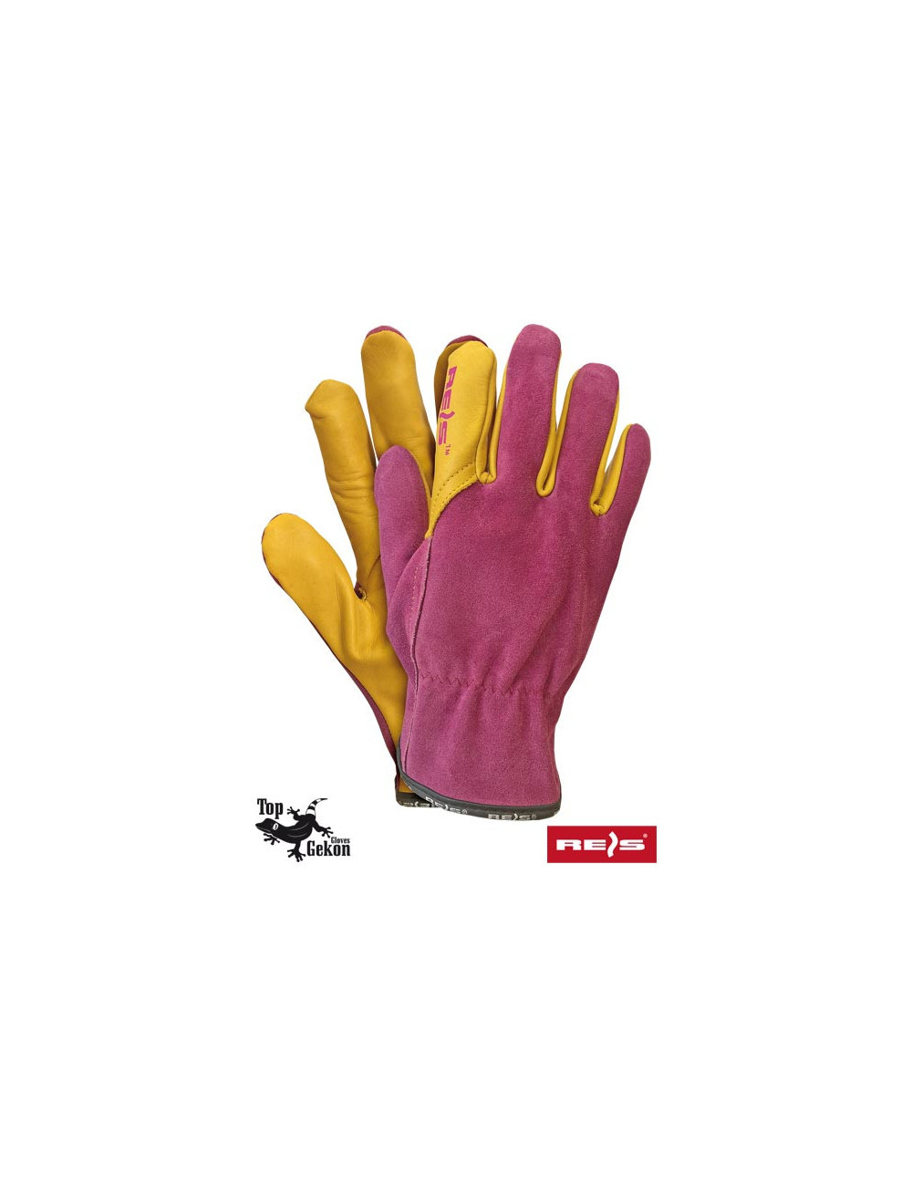 Schutzhandschuhe. - Obermaterial aus gespaltenem Rindsleder in Lila - Griffteil aus genarbtem Rindsleder in Gelb - Vollhandfläche - Griffteil des Handschuhs aus einem Stück Leder, wodurch sie haltbarer und abriebfester sind - Faltenbildung am Handgelenk sorgt dafür, dass die Handschuhe besser an die Hand passen – ideal für Frauen – wird gerne für allgemeine mechanische Arbeiten verwendet