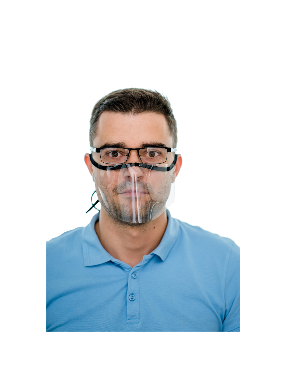 Ein Mini-Visier aus PVC und einem Baumwollstreifen soll die oberen Atemwege vor Tröpfcheninfektionen schützen. Außerdem schützt es die Schleimhäute von Nase und Mund vor schmutzigen Händen, Gegenständen und leichten mechanischen Verletzungen.