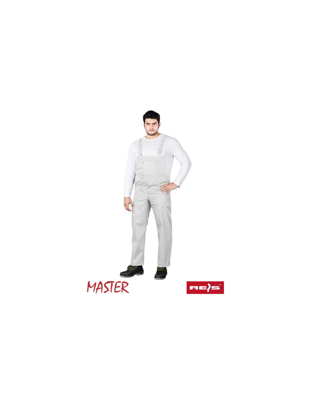 Master protective dungarees. - 65% polyester, 35% cotton - weight 262 g/m2 - adjustable waist thanks to additional buttons and suspenders in the length, which additionally have an elastic band in the back part - two side pockets and one on the leg - additionally two pockets in the upper part pants, including one with a zipper - made of high-quality material, which ensures that after repeated washing the colors remain intense and the size is stable