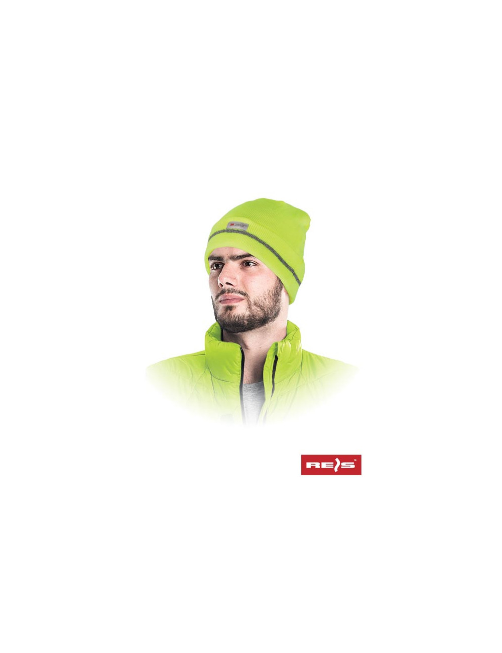 Winter hat knitted in a fluorescent color. - coating 100% acrylic yarn - lining 100% polyester - insulated with a Thinsulate insert, which provides excellent thermal insulation - turned up, so you can adjust its length - reflective thread insert - works well not only in winter, but also in late autumn or early spring - ideal for road users