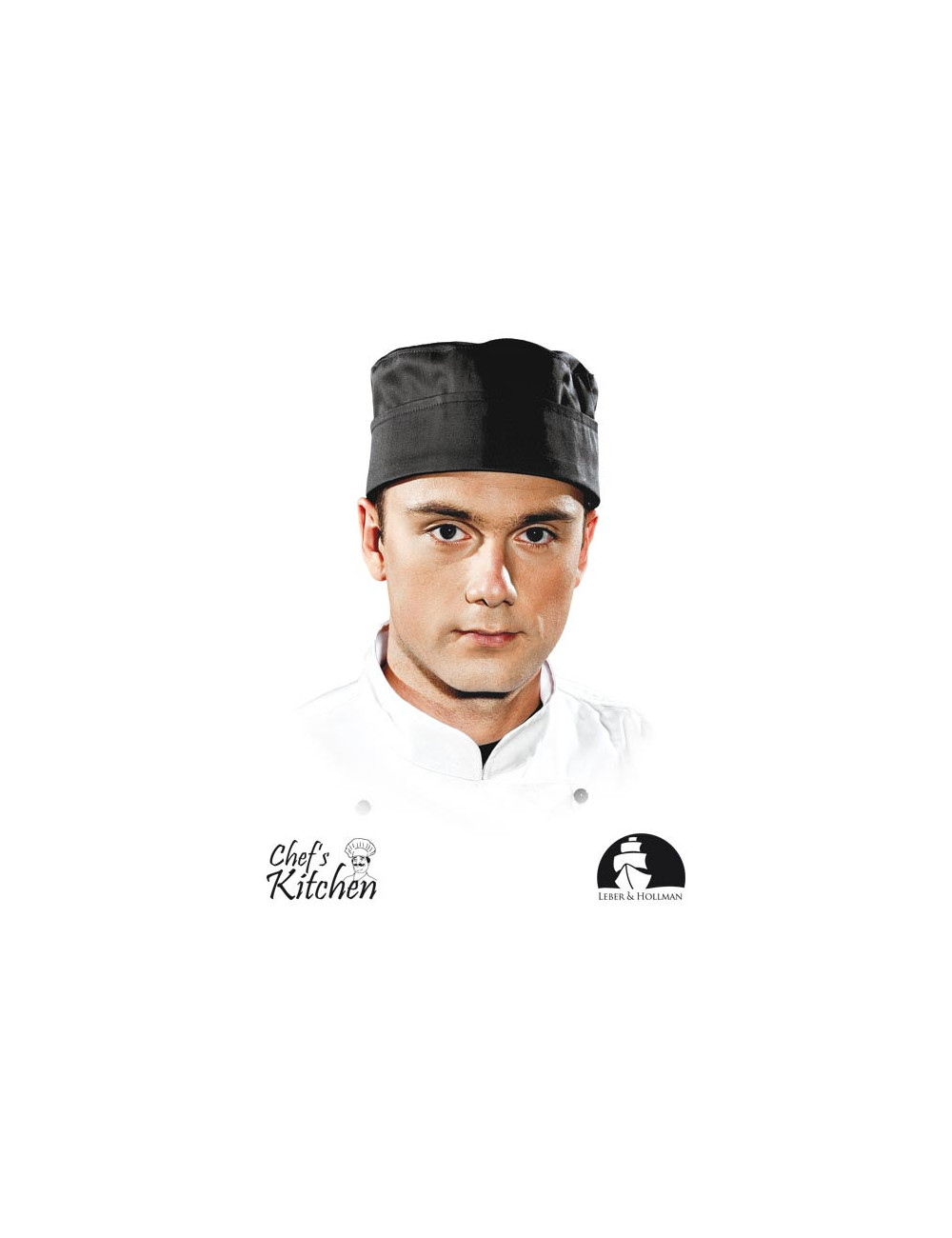 Short chef's hat from the Chef's Kitchen series. - 65% polyester, 35% cotton - grammage 245 g/m2 - suitable for industrial washing (maximum temperature 95°C) - fabric parameters increase the effectiveness of stain removal - flat top of the cap - half-turned
