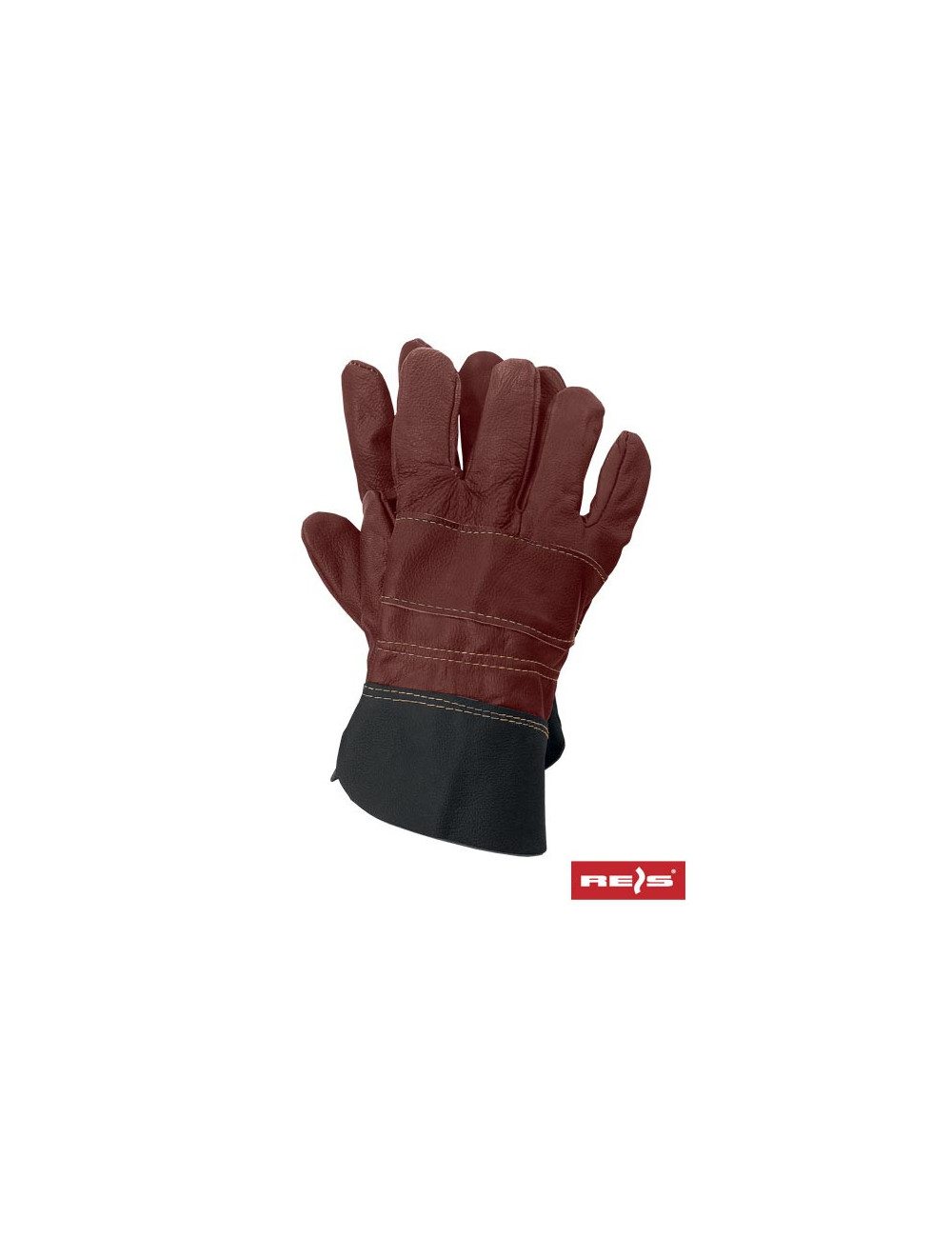 Protective gloves made entirely of leather in dark colors. - grain cowhide with stitching on the palm - full leather, i.e. entirely made of leather, including the cuff, thanks to which the glove protects against soaking and better protects the wrist from injuries - lined on the inside, which increases the comfort of use - popularly used for general mechanical work - used in construction, heavy industry