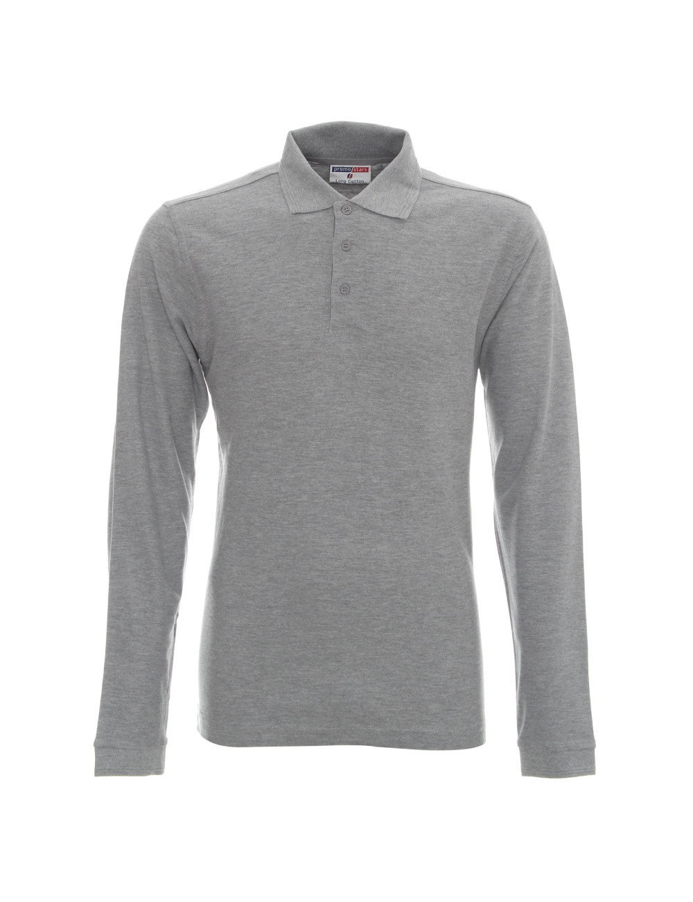 Men`s polo long cotton light gray melange Promostars