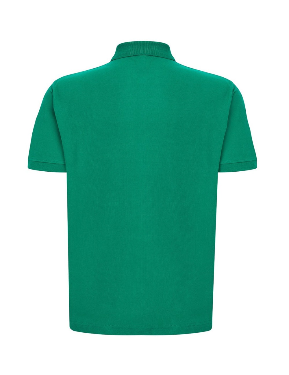 Men's short-sleeve polo shirt. Fastened with two buttons. 1x1 knitted collar and sleeves. Side slits. 100% stabilized worsted pique cotton.