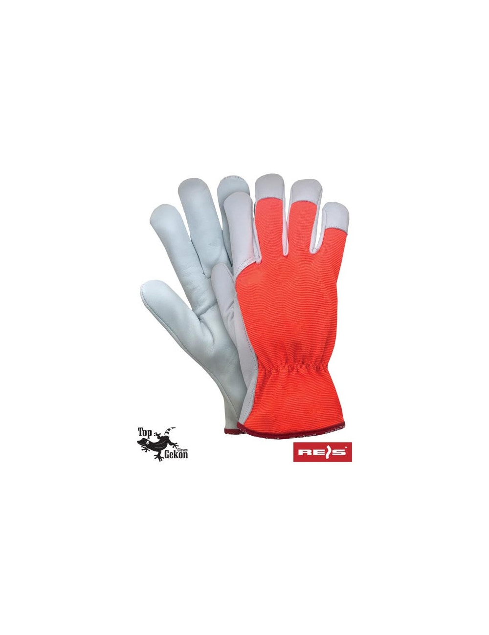 Protective gloves made of high-quality goatskin. - grain goat leather in bright colors - the top part is made of spandex in a fluorescent color that increases the visibility of the user - soft, high-quality goat leather ensures excellent work comfort and satisfaction of even the most demanding customer - wrinkling at the wrist makes the gloves adhere better to the hand - popularly used for general mechanical work - perfect for drivers and managers