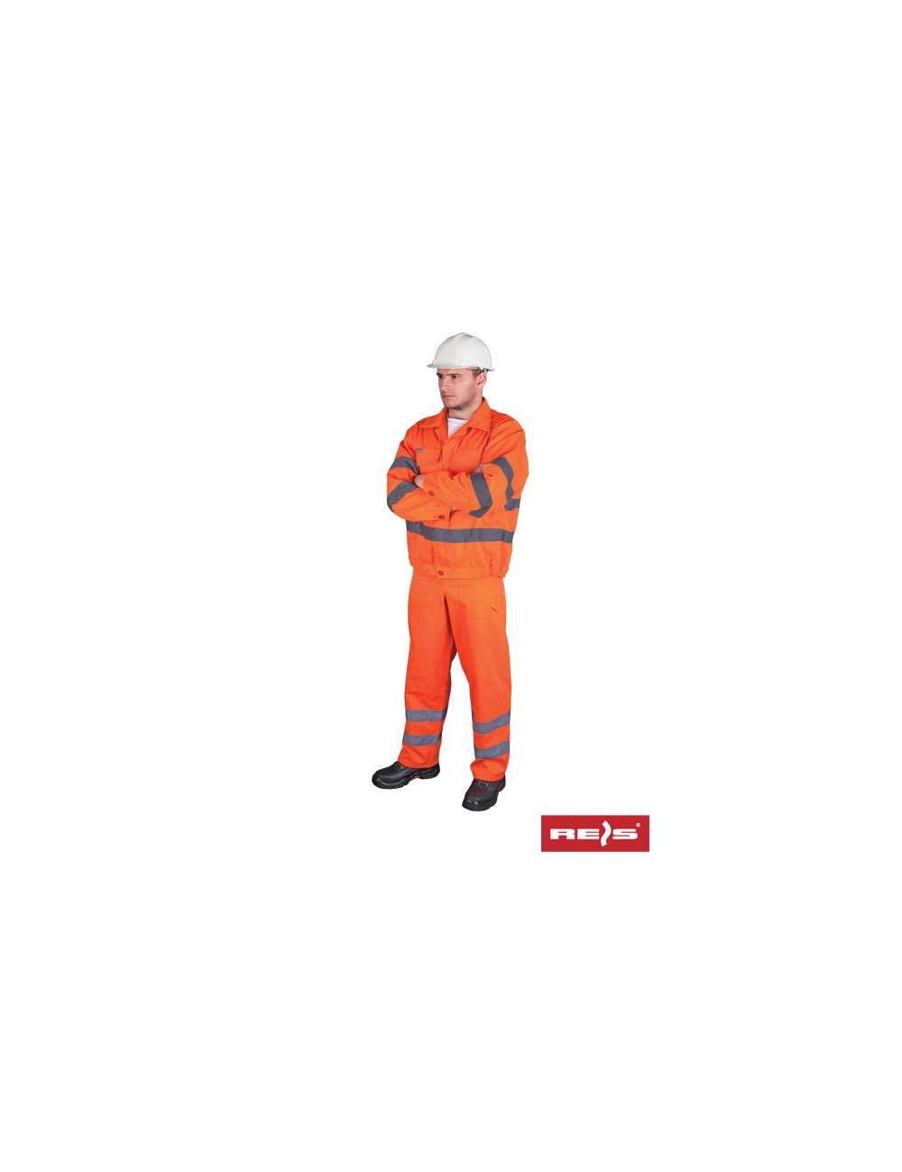 Hi-Vis clothing consisting of a jacket and bib pants. - fluorescent fabric: 86% polyester, 14% cotton - weight 300 g/m2 - in the lower parts of the jacket, sleeves and trousers there are reflective stripes that ensure good visibility of the user - sweatshirt: fastened with buttons, two pockets fastened with buttons on the front side turnip. - elastic band at the bottom of the sweatshirt, protecting against wind - pants: adjustable length with braces, additional buttons at the waist. - two side pockets, one on the leg, additionally three pockets on the upper part of the trousers and a key clip - ideal for road workers and law enforcement services - certified by the German TUV institute - meets the requirements of EN471 (clothing class - 2, reflective material class - 2)