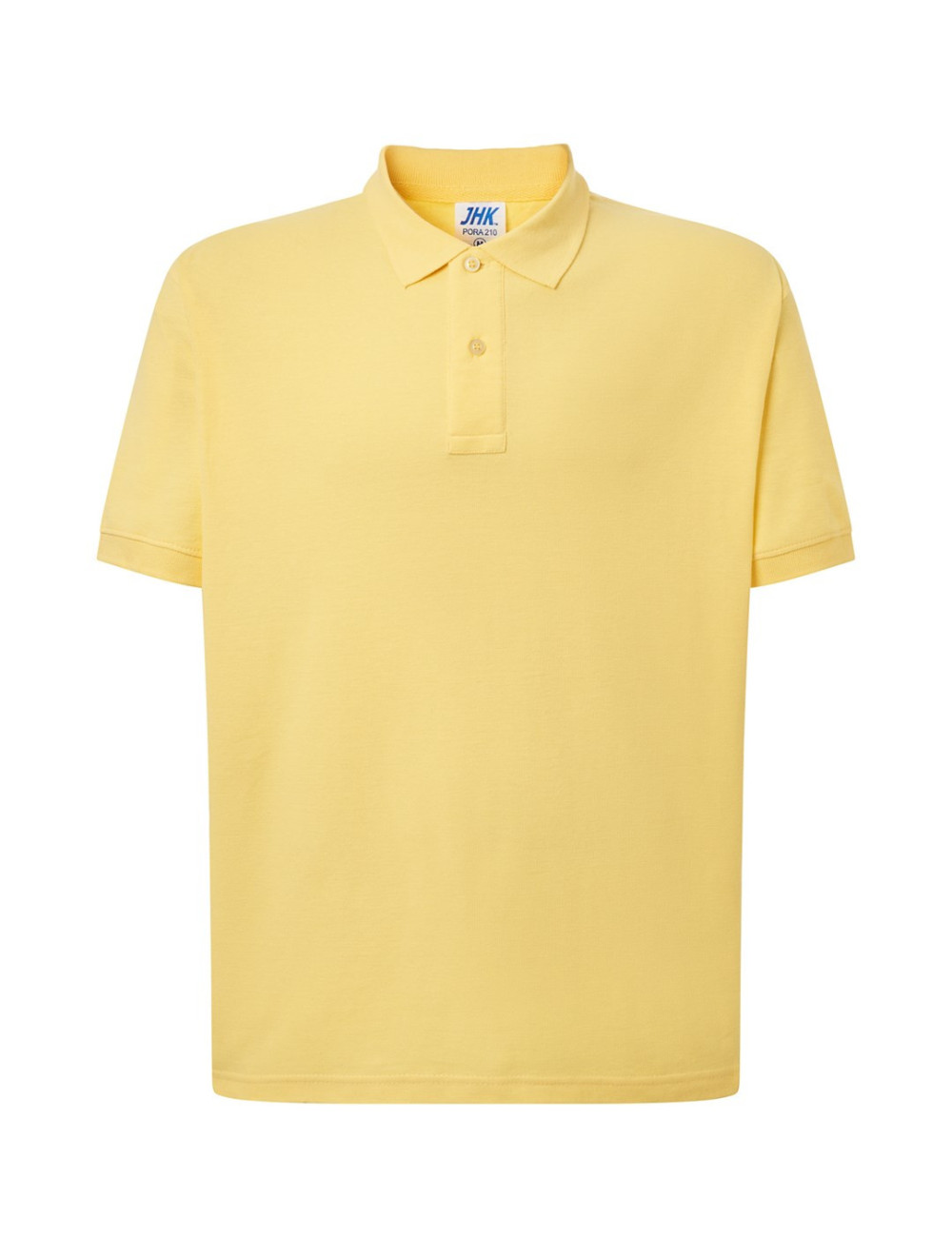 Polo męskie z krótkim rękawem. Zapinane na dwa guziki. Kołnierzyk i rękawy wykończone dzianiną 1x1. Boczne rozcięcia. 100% stabilizowana bawełna czesankowa pique.