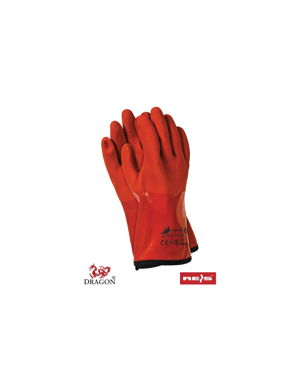 Rękawice ochronne termoodporne wykonane z PCV w kolorze pomarańczowym. - szorstka powierzchnia części chwytnej ułatwia chwytanie śliskich przedmiotów - hydrofobową wyściółkę można wywinąć na zewnątrz i bardzo szybko wysuszyć - zaprojektowana tak, by odprowadzać pot od skóry ręki - wyściółka wykonana z wysokiej jakości tkaniny polarowej, która gwarantuje komfort użytkowania oraz ciepło - wytrzymałe na ścieranie
