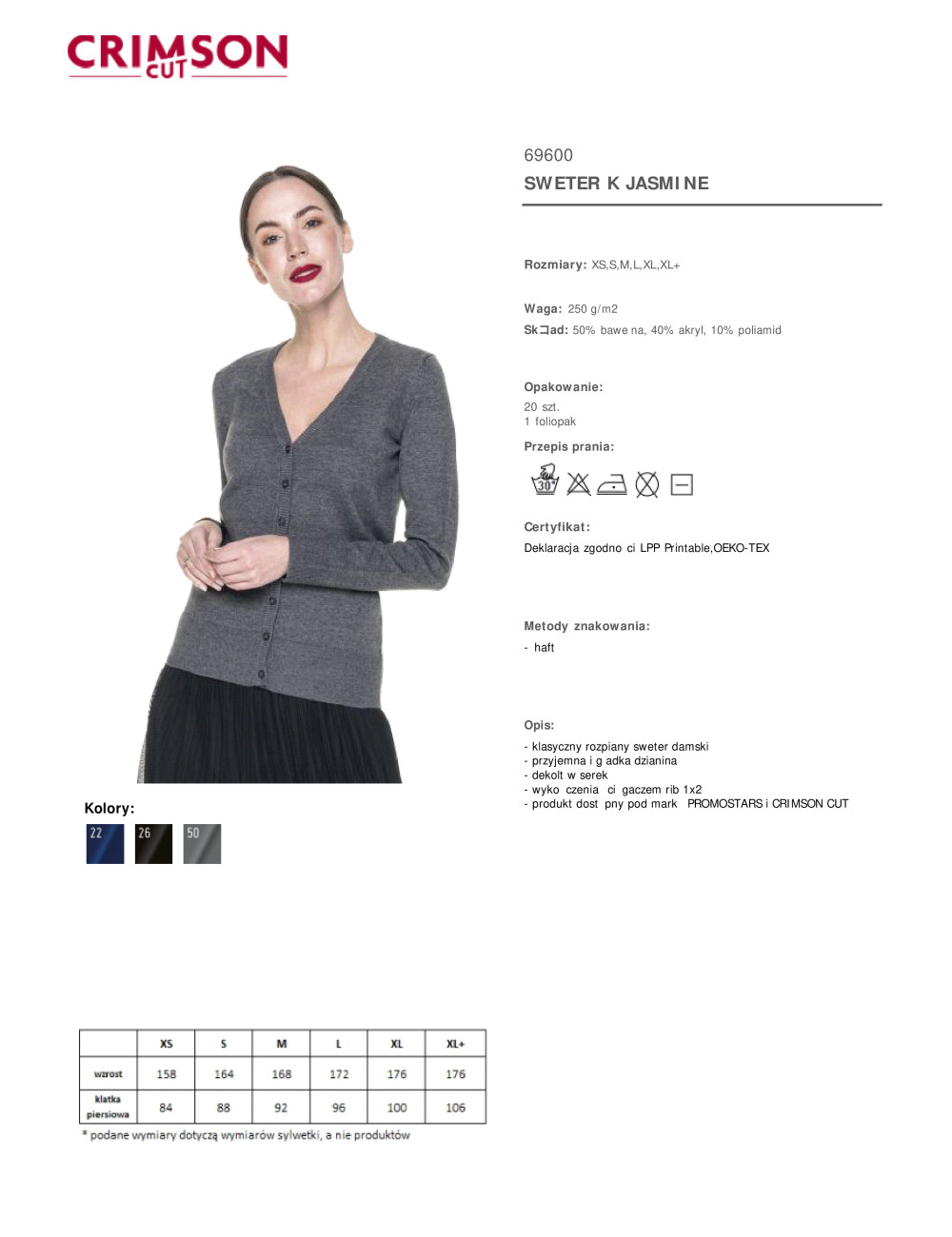Sweter damski jasmine szary Promostars/Crimson CUT